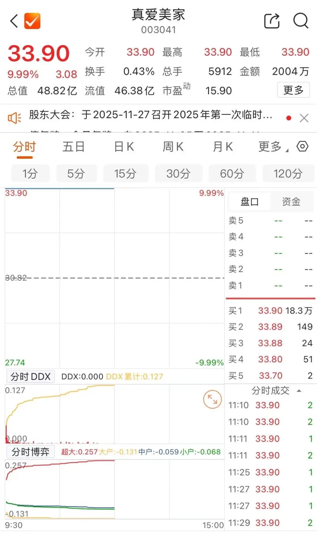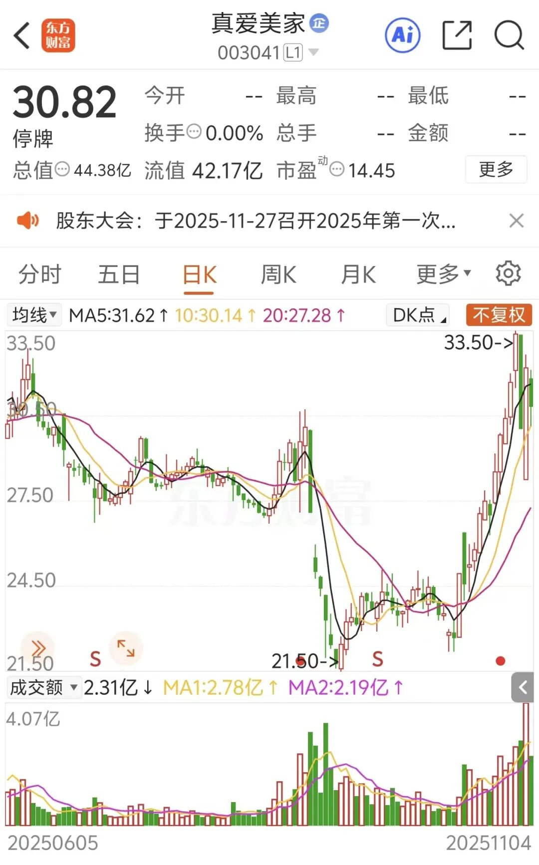 11月12日,真爱美家股票复牌后“一字”涨停,市场对这一变动反应积极。