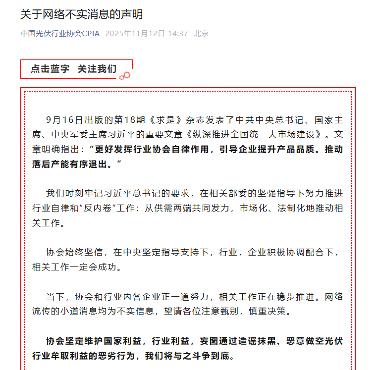 临近尾盘,部分光伏设备概念股出现异动,中来股份小幅拉升,通威股份、隆基绿能、大全能源等多股跌幅有所收窄。消息面上,今日有传闻称,光伏行业酝酿的收储一事“黄了”。中国光伏行业协会发布声明称,当下,协会和行业内各企业正一道努力,相关工作正在稳步推进。网络流传的小道消息均为不实信息。针对妄图通过造谣抹黑、恶意做空光伏行业牟取利益的恶劣行为,协会将与之斗争到底。