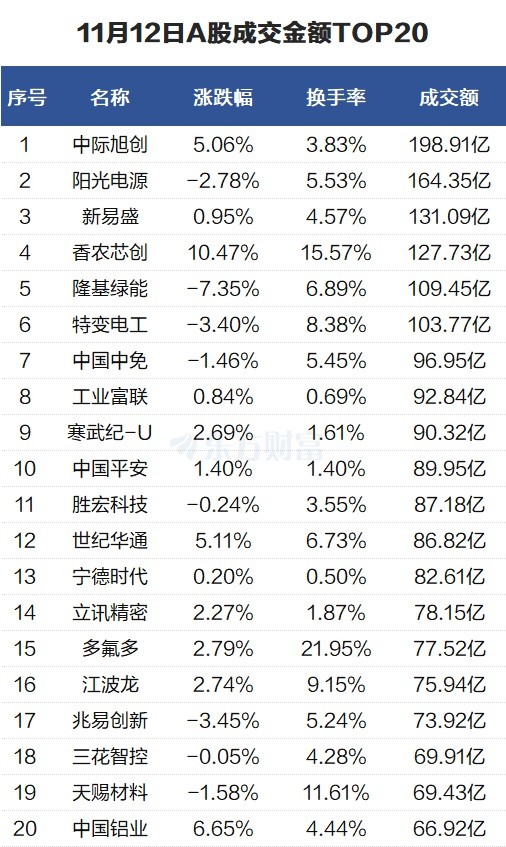 11月12日A股市场:指数微跌,个股成交活跃,换手率数据亮眼