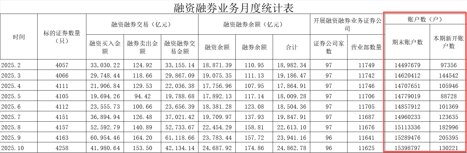 A股两融市场10月数据出炉:新开户回落,头部券商提额