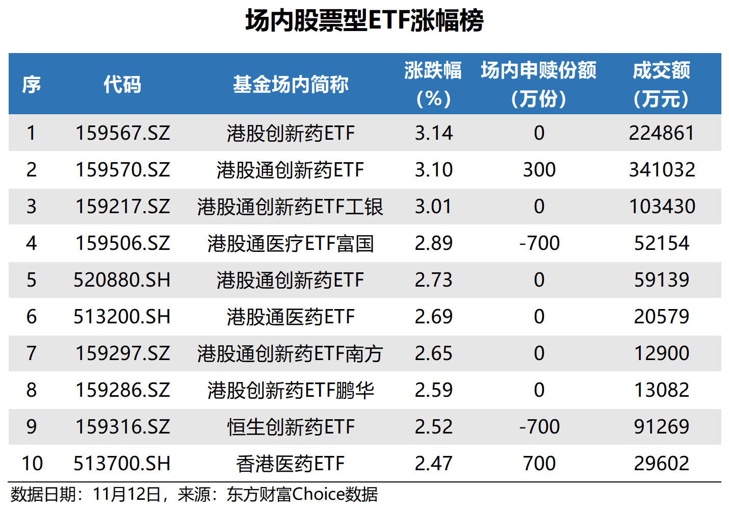 港股创新药ETF涨幅最大