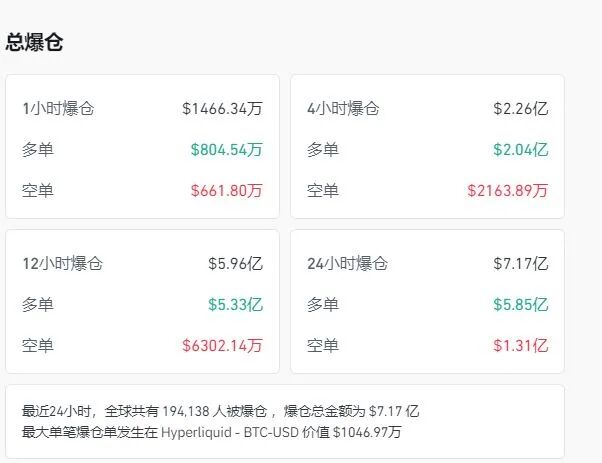 热门中概股多数下跌,纳斯达克中国金龙指数收跌1.59%。百度跌超6%,哔哩哔哩跌超4%,小鹏汽车、蔚来跌超3%。富时A50期指连续夜盘收跌0.47%,报15466点。现货黄金跌1.05%,报4151.25美元/盎司;现货白银跌1.78%,报52.28美元/盎司。WTI 12月原油期货收涨0.20美元,涨幅0.34%,报58.69美元/桶。布伦特1月原油期货收涨0.30美元,涨幅0.48%,报63.01美元/桶。行情显示,比特币跌至99148.52美元,跌幅达2.46%。coinglass数据显示,24小时加密币全网共有194229人被爆仓,爆仓总金额为7.17亿美元(约合人民币50.88亿元)。