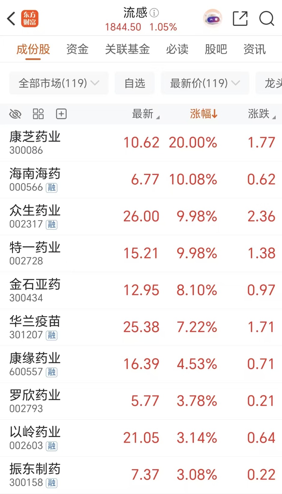 对于资金关注度靠前的个股逻辑。华安证券表示,众生药业旗下众生睿创开发的昂拉地韦片是全球首个流感病毒RNA聚合酶PB2抑制剂,已获批上市。该药物在3期临床试验中显示,中位七项流感症状缓解时间较安慰剂组缩短39%,较奥司他韦组缩短近10%,病毒转阴时间显著缩短,且安全性良好,药物疗效显著。