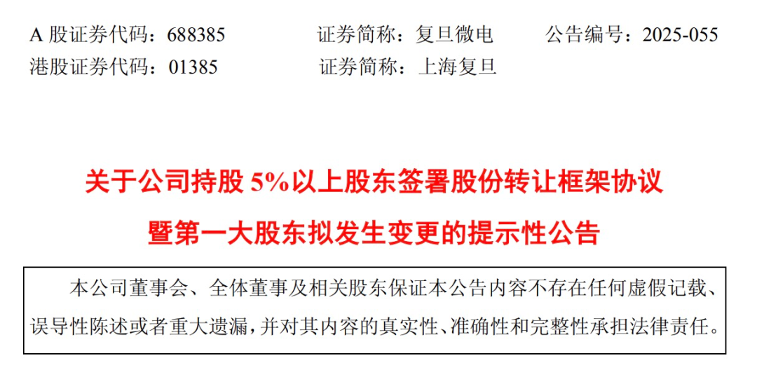 同时,复旦微电表示,本次股权转让尚需转让方及受让方取得内部决策机构及主管国资监管机构的批准或备案(如需)、签署正式的股权转让协议、国家市场监督管理总局关于经营者集中的审查(如适用)及其他行政主管部门审批同意(如需)并经上海证券交易所进行合规性确认后,方能在中国证券登记结算有限责任公司上海分公司办理股权转让过户手续。