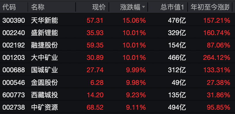 锂矿股大幅冲高
