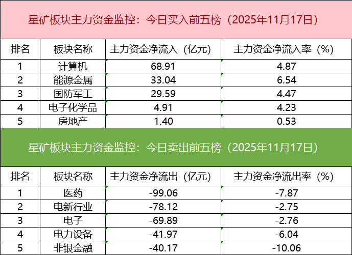 从主力板块资金监控数据来看,计算机板块主力资金净流入居首。
