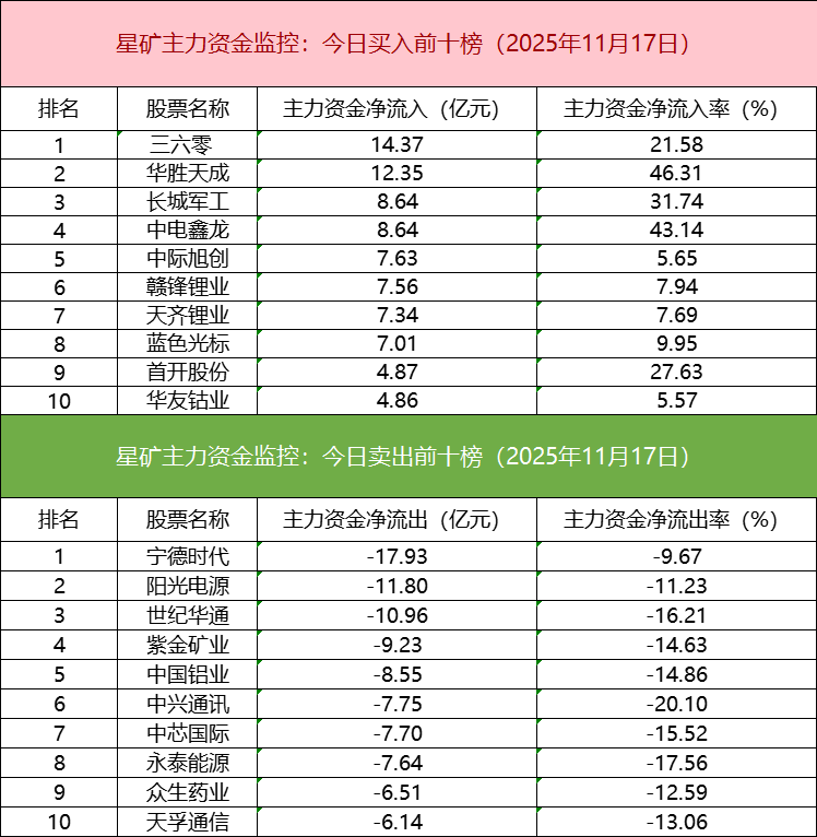 从个股主力资金监控数据来看,主力资金净流入前十的个股所属板块较为分散,三六零净流入居首。