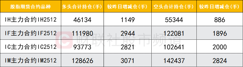 四大期指主力合约中,IH、IF、IC、IM合约多空双方均加仓,IF合约多头加仓数量较多,期指市场看涨预期增强。