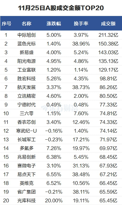 沪深两市成交额1.81万亿元,较上一交易日放量844亿元。个股方面,中际旭创当日成交211.32亿元。蓝色光标当日成交150.38亿元。