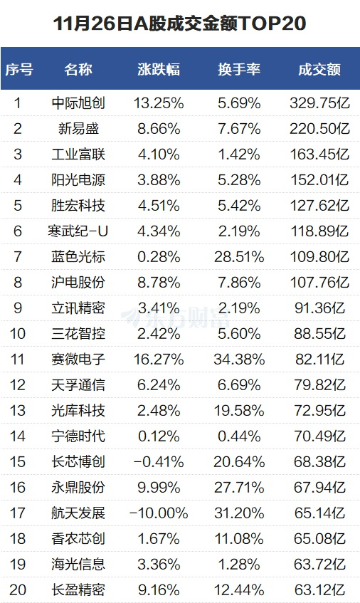 沪深两市成交额1.78万亿元,较上一交易日缩量288亿元。个股方面,中际旭创当日成交329.75亿元。新易盛当日成交220.5亿元。