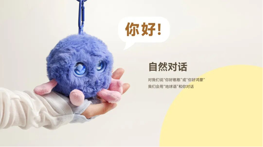 这款联名产品为鸿蒙5.0及以上系统进行了优化,可通过独立App链接2.4g网络与手机联动,融入华为全场景生态。产品交互包含摸头、摇晃、语音等。