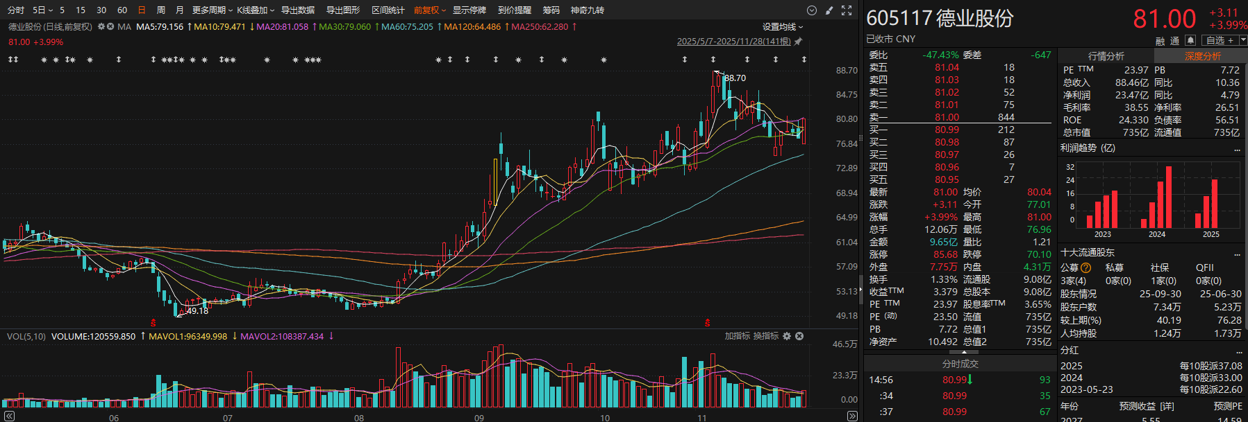 逆变器龙头德业股份11月13日公告,为推进全球化发展战略,提升品牌国际影响力与核心竞争力,积极借助国际资本市场拓宽多元融资渠道,正在筹划发行境外股份(H股)并在香港联合交易所有限公司上市事宜。相关细节尚未确定,不会导致公司控股股东和实际控制人发生变化。本次H股上市工作尚需提交公司董事会和股东大会审议,并经中国证券监督管理委员会备案和香港联交所等监管机构审核。二级市场方面,德业股份自今年6月低点迄今股价累计最大涨幅达80.36%。