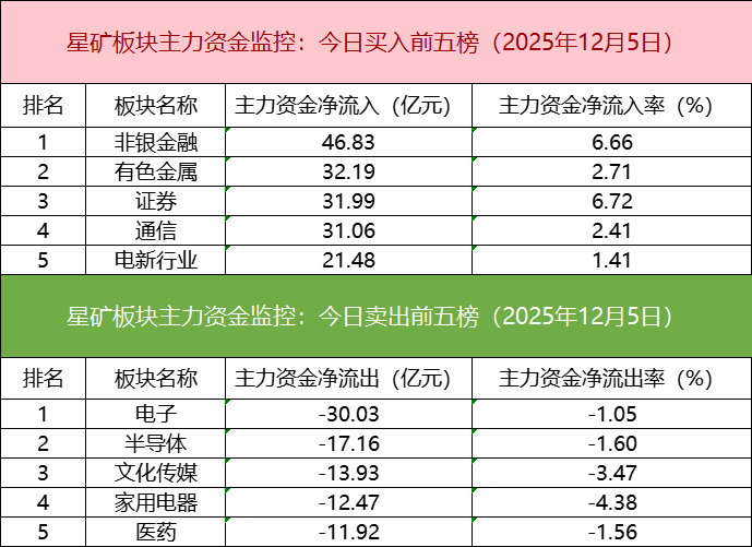 板块资金流出方面,电子板块主力资金净流出居首。