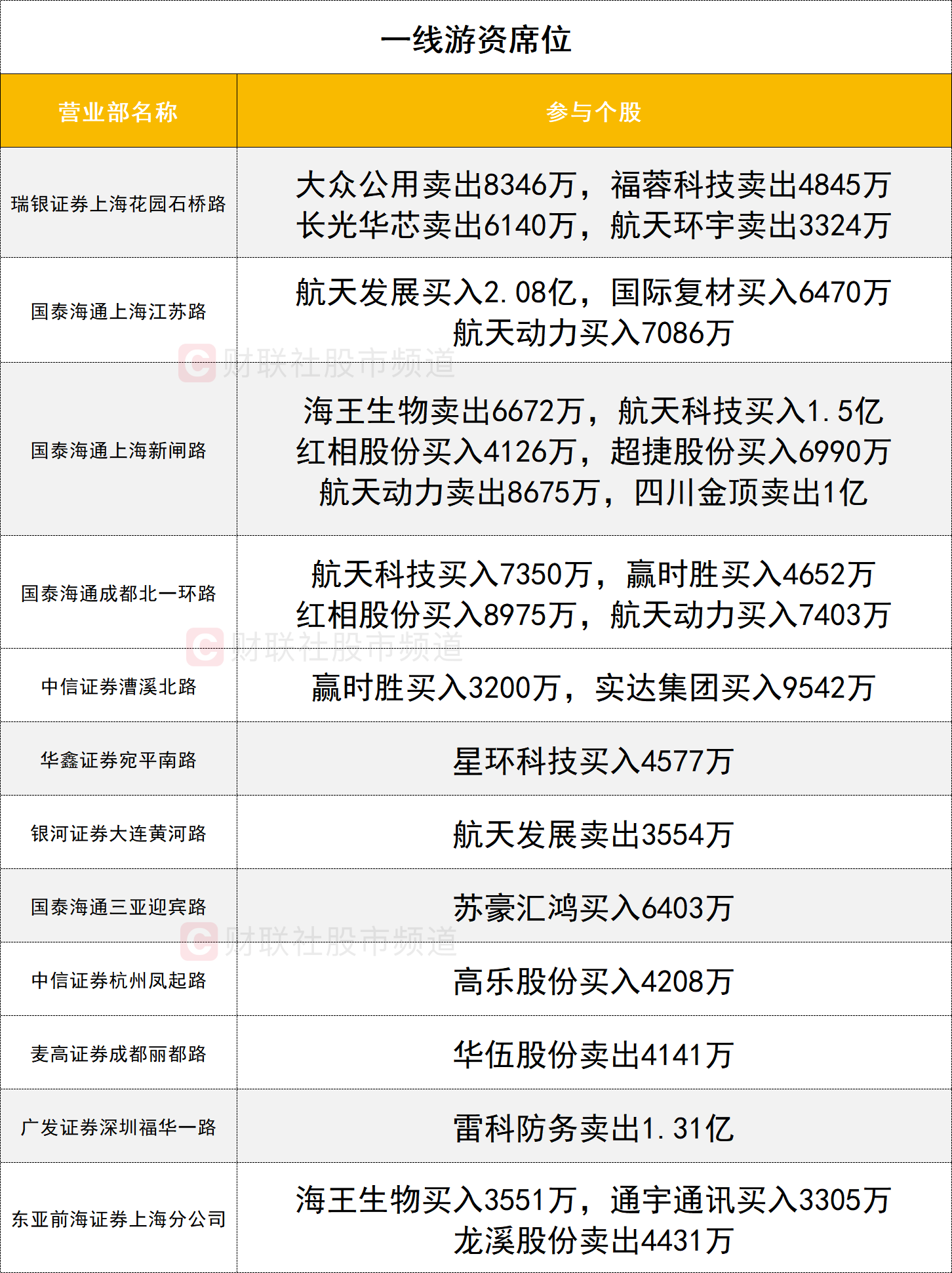 另一只商业航天概念股航天科技获两家一线游资席位(国泰海通证券上海新闸路、国泰海通证券成都北一环路)合计买入2.23亿。