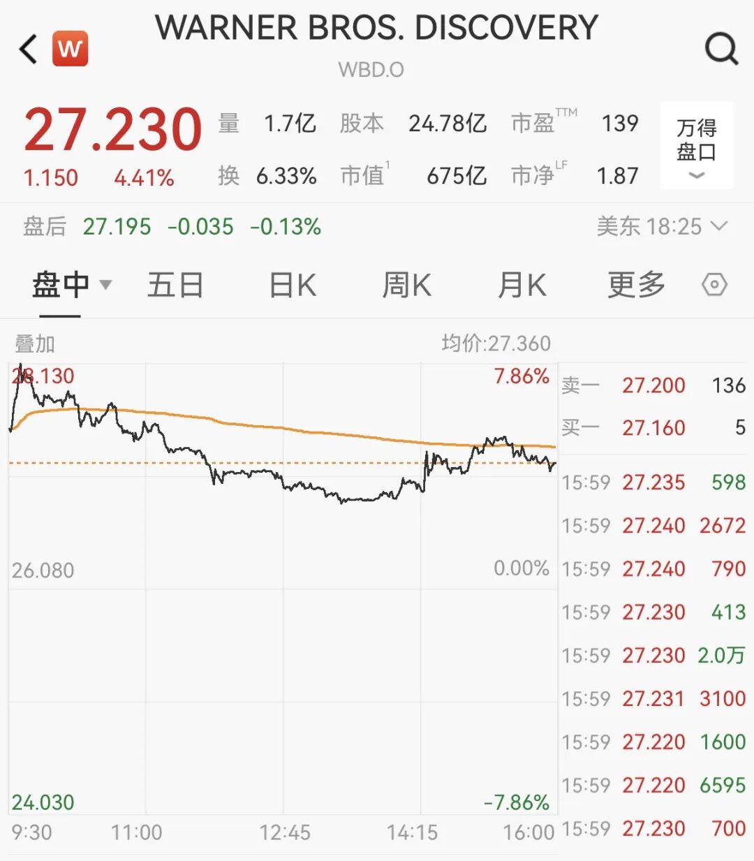 派拉蒙7600亿收购华纳兄弟探索,奈飞大跌