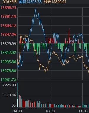 受该现象影响最明显的,是深证成指在10:00~10:30这段时间,黄白线几乎完全背道而驰。而创业板指又几乎没有这样的情况。