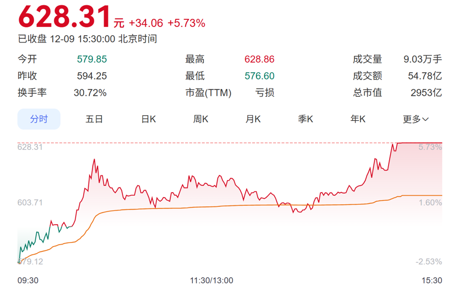 这几天,芯片行业的“头条新闻”不断。12月9日一早,美国政府将允许英伟达向中国出售H200人工智能芯片,但美方将从相关交易中收取约25%的费用,未来,AMD和英特尔也将受益于此。就在几天前,“国产GPU第一股”摩尔线程正式登陆科创板,上海GPU龙头沐曦股份公布“打新”名单。面对突如其来的芯片入华政策松绑,国产AI芯片企业股价逆势上扬。摩尔线程小幅低开后快速翻红,而海光信息、寒武纪等AI芯片企业也迎来小幅上涨。为何没能吓跑“国产平替”的投资者们?资本偏爱12月5日,上海科创板一路飘红。摩尔线程上市首日,股价飙升超500%,市值突破3055亿元。彼时,摩尔线程最终收涨425%,定格2820亿元。若以盘中最高价格计算,投资者中一签可赚28万元左右。两天后,沐曦股份公布了科创板IPO网上发行最终中签率:0.03348913%。这一数值比摩尔线程的中签率还低,创下今年科创板新股中签率新低。