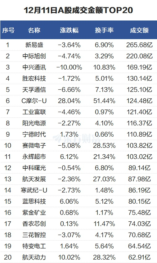 股市行情 | 12月11日股市表现