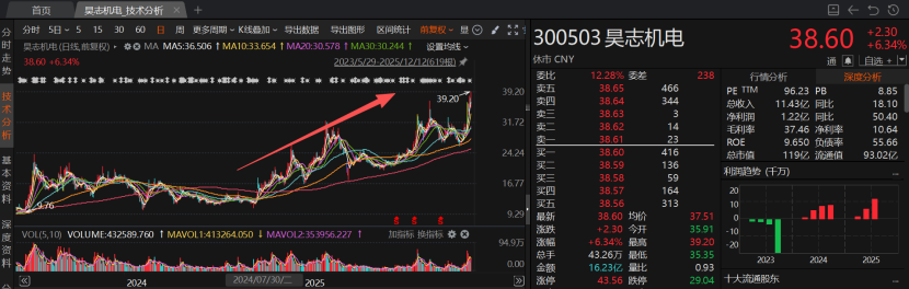 昊志机电的谐波减速器、无框力矩电机等产品可应用于人形机器人。东北证券谢佶圆等人在12月11日发布的研报中表示,昊志机电机器人业务打造第二增长曲线。公司已构建起“N+1+3”的机器人业务体系,其中昊志机器人成立于2024年,由昊志机电全资控股,专注于减速机等核心领域。当前相比国际17规格以下同类减速器,昊志机电的传动精度提升66.7%,振动峰值下降60%,声音强度降低约22.7分贝,达到世界领先水平,已送样头部人形机器人厂商测试。