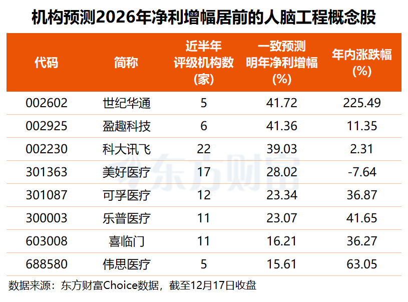盈利预测方面,机构一致预测盈趣科技、科大讯飞等3股2026年净利有望实现40%左右的增长。美好医疗、可孚医疗等3股净利预测增幅在20%至30%之间。