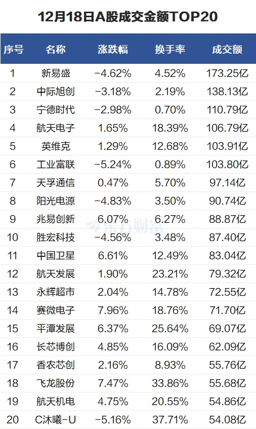 沪深两市成交额1.66万亿元,较上一交易日缩量1557亿元。个股方面,新易盛当日成交173.25亿元。中际旭创当日成交138.13亿元。