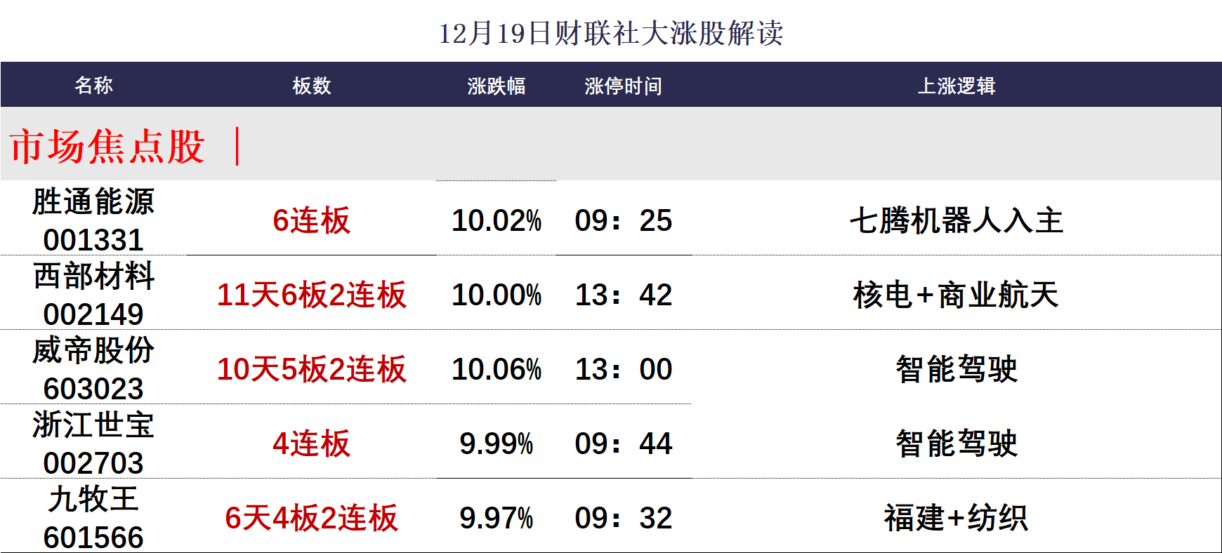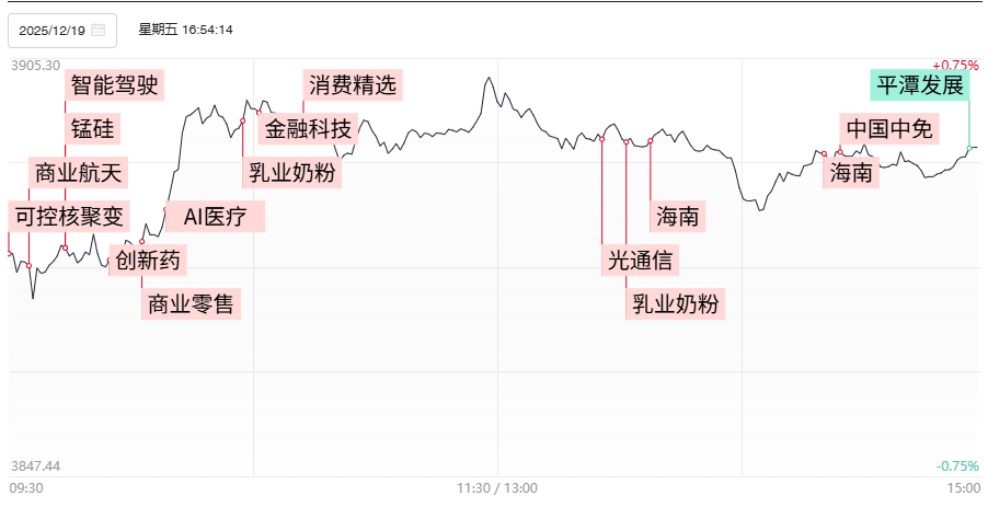 财联社12月19日讯,今日70股涨停,23股炸板,封板率为75%,胜通能源6连板,浙江世宝4连板,苏利股份、中天服务、鹭燕医药3连板,西部材料11天6板,威帝股份10天5板,九牧王、嘉美包装6天4板。沪指震荡回升,创业板指冲高回落,此前一度涨超1.5%。东百集团、平潭发展、海峡创新等多只高位股尾盘跳水。沪深两市成交额1.73万亿,较上一个交易日放量704亿。盘面上,市场热点快速轮动,全市场超4400只个股上涨。板块方面,海南、乳业、零售等板块涨幅居前,贵金属、半导体等板块跌幅居前。