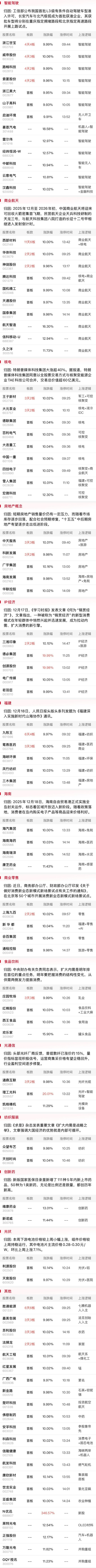 据报道,特朗普媒体科技集团与TAE Technologies签署合并协议,计划建设全球首座聚变发电厂。受该消息提振,可控核聚变概念股王子新材等涨停。此外,商业航天产业活跃度持续高涨,西部材料、神剑股份、华体科技等实现连板晋级。国内首批L3级自动驾驶车型获得上路测试许可,智能驾驶概念股浙江世宝等涨停。商务部开展消费新业态试点,大消费板块人气不减,犒赏经济概念继续得到资金挖掘。