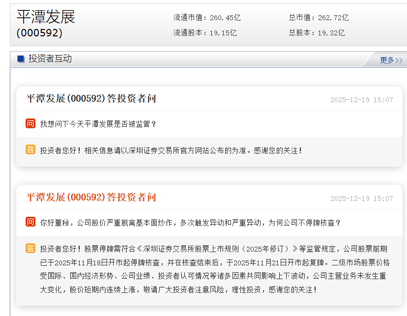 12月19日收盘后,一只A股名称突然登上微博热搜第二。只因其当日股价一度涨超6%后,平潭发展尾盘直线跳水,跌超7%。