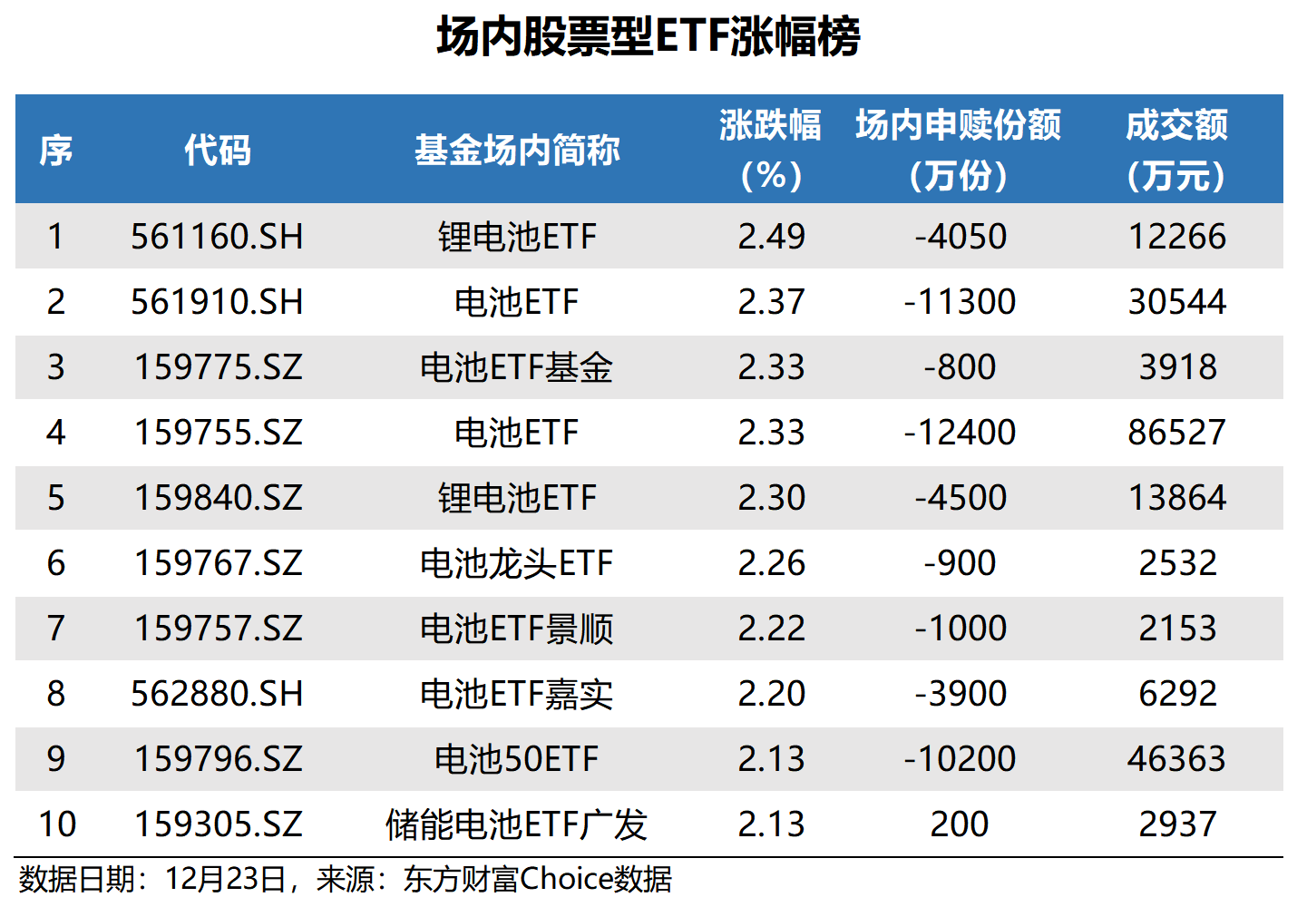 锂电池ETF涨幅最大