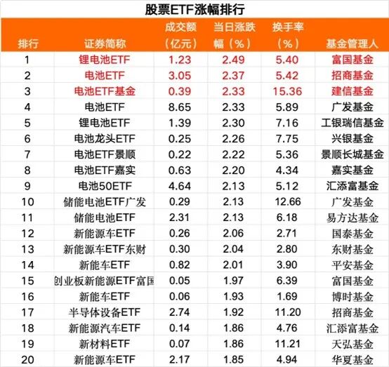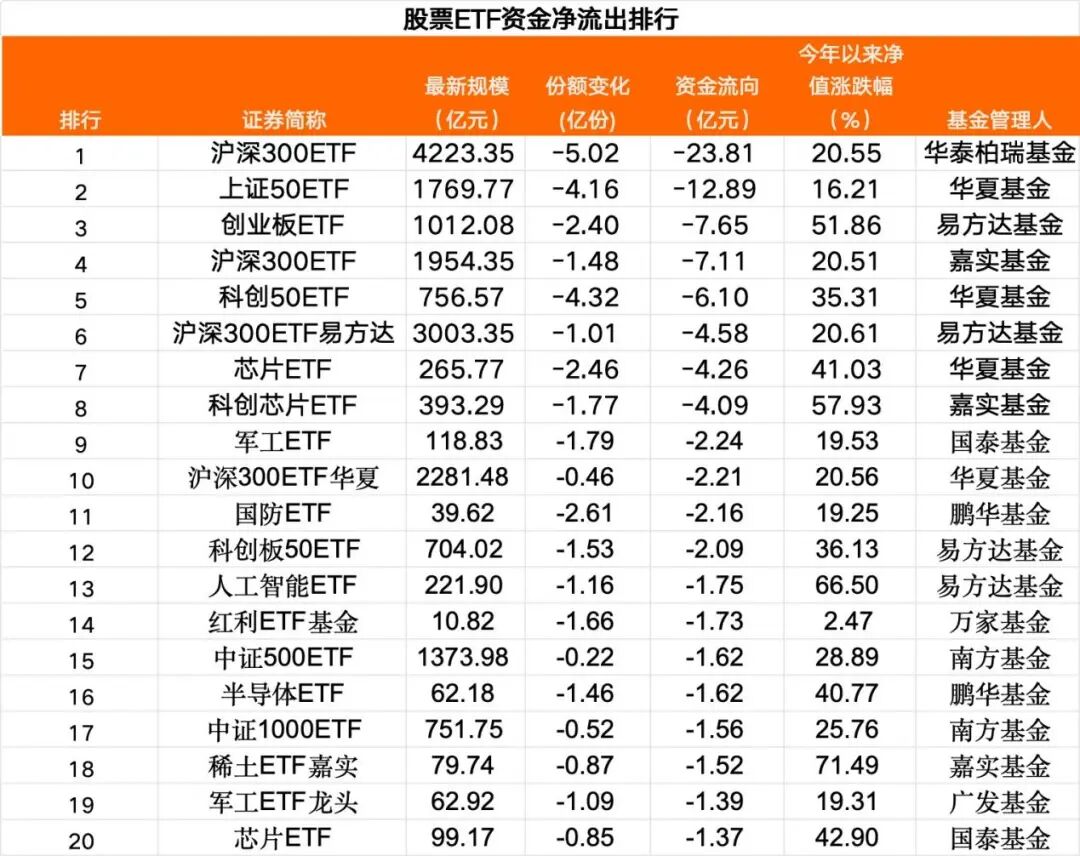 市场震荡回暖,部分资金继续入场。Wind数据显示,12月23日,股票ETF市场总份额增加77.89亿份。整体来看,12月23日全市场资金净流入59.1亿元,债券ETF与宽基ETF净流入居前,分别达195.22亿元与50.43亿元;行业主题ETF净流出居前,达24.99亿元;规模变化方面,债券ETF规模上升197.53亿元。头部基金公司旗下部分ETF净流入步伐持续。