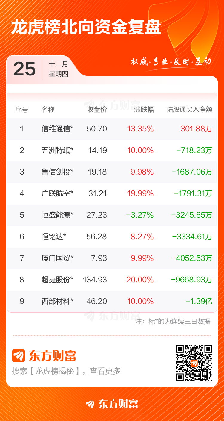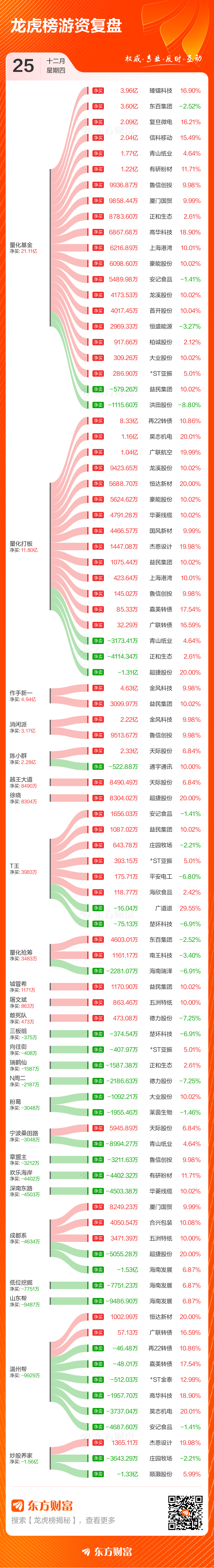 12月25日共有62只个股(含3只可转债)上榜龙虎榜,总上榜成交额317.44亿元。上榜个股中净买入额最高的是金风科技,金额为6.67亿元。