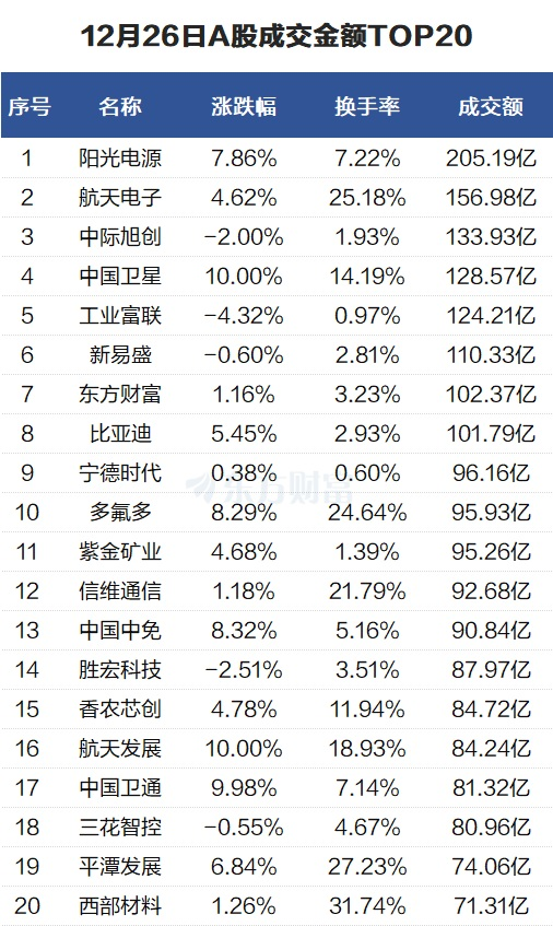 沪深两市成交额2.16万亿元,较上一交易日放量2357亿元。个股方面,阳光电源当日成交205.19亿元。航天电子当日成交156.98亿元。