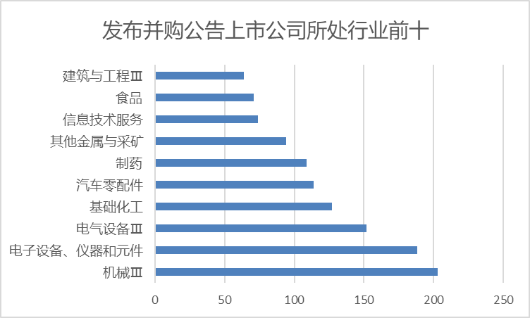 从所处行业看发布并购重整公告数量前十的企业依次为机械、电子设备、电气设备等。