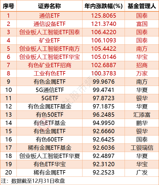 2025年ETF涨幅榜单:AI与通信设备相关ETF表现抢眼