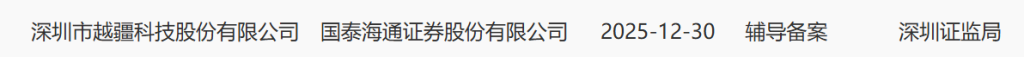 12月30日,据证监会公开发行辅导公示系统显示,“协作机器人第一股”深圳市越疆科技股份有限公司(越疆,2432.HK)向深圳证监局完成IPO(首次公开发行)辅导备案,由国泰海通担任辅导机构。