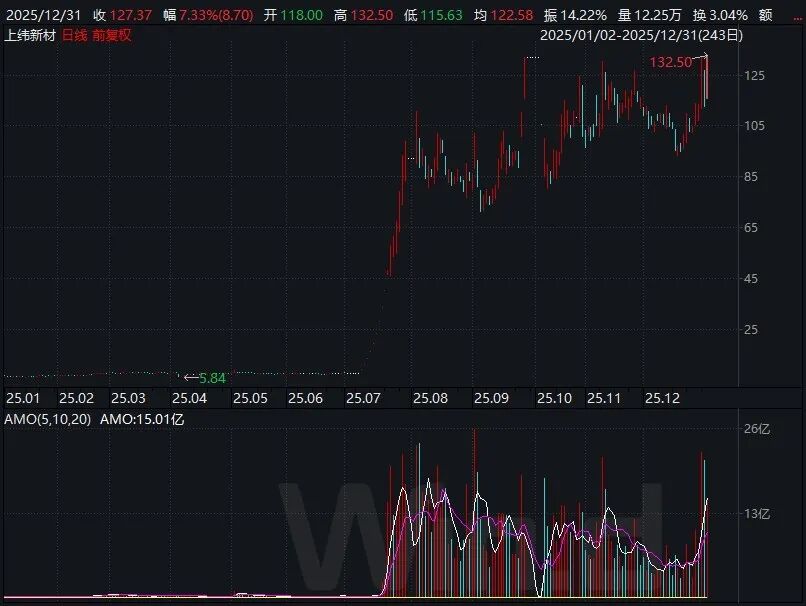 2025年十大牛股正式出炉。剔除年内上市的次新股,上纬新材以1820.29%的全年涨幅拔得头筹,智元机器人“入主”无疑是推升公司股价的最关键因素,今年11月,智元对上纬新材的收购在法律程序上全部完成,拉开了人形机器人企业奔赴A股的大幕。