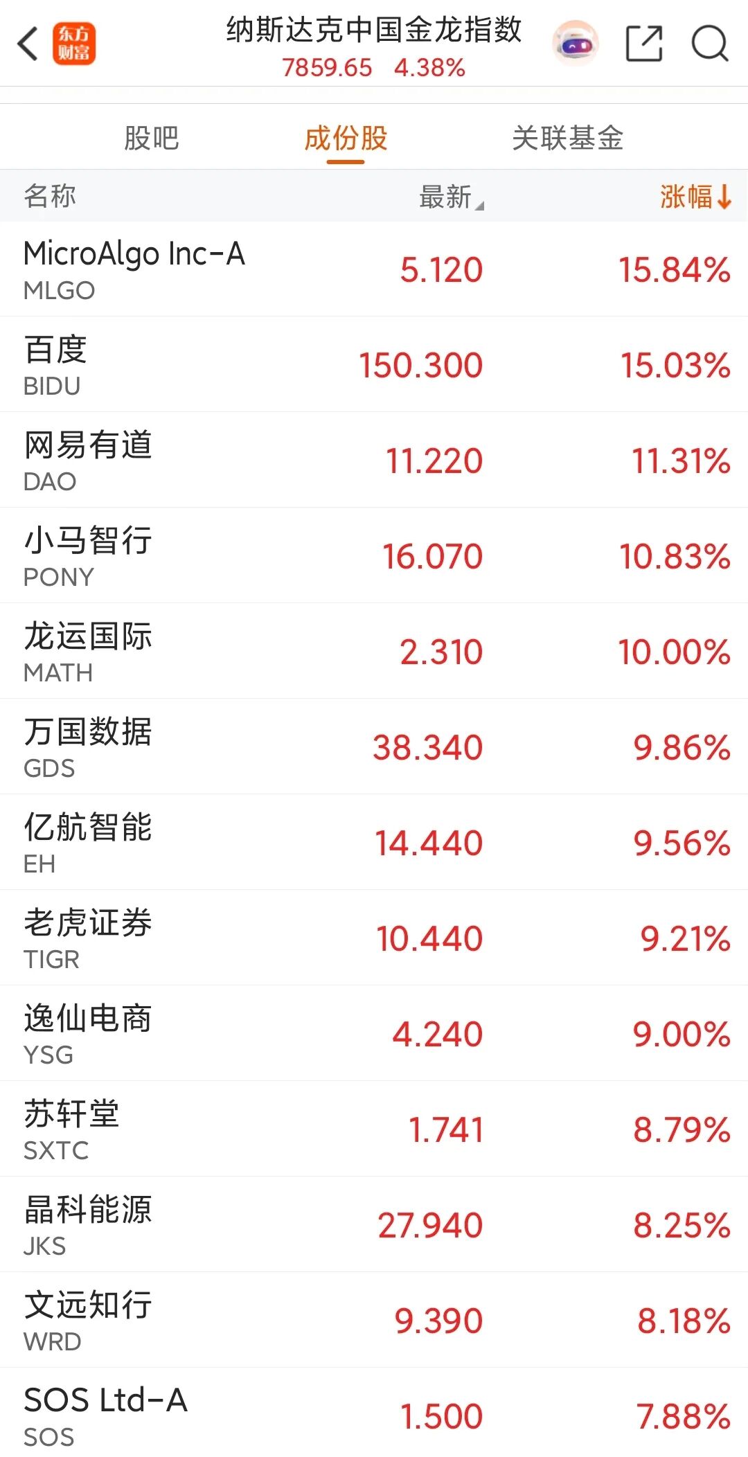 百度带领金龙指数腾飞