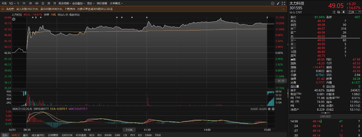 市场表现看,商业航天概念股本周表现活跃。太力科技周一发布机构调研纪要表示,公司材料技术在航天领域的核心应用方向如下:其一,公司为中国航天真空收纳产品独家供应商,核心真空收纳产品深度服务于航天员在轨工作与生活保障;其二,依托公司在纳米流体材料、聚合物弹性体等核心材料领域的技术积淀与优势,正积极拓展防刺割、冲击防护等领域的应用场景,持续拓宽技术落地边界,释放更大市场价值。二级市场上,太力科技周三收盘涨超14%。