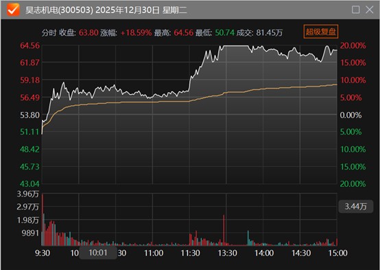 昊志机电周二发布机构调研纪要表示,公司在商业航天领域已与蓝箭航天开展业务合作,部分产品已在头部商业航天公司实现小批量应用,并形成小幅盈利;同时,公司正与行业内多家潜在客户保持沟通并积极推进市场拓展工作。截至2025年9月30日,公司在机器人、商业航天领域的业务合计占主营业务收入约1%。二级市场上,昊志机电当日盘中20CM涨停,收盘涨超18%。
