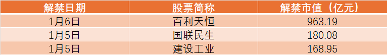 本周两市超1600亿元市值限售股解禁Wind数据显示,本周(1月5日至1月11日)将有36股解禁,合计解禁数量超43亿股,以最新收盘价计算(下同),总解禁市值超1600亿元。有16股解禁市值超10亿元,其中百利天恒、国联民生、建设工业3股解禁市值超百亿元。