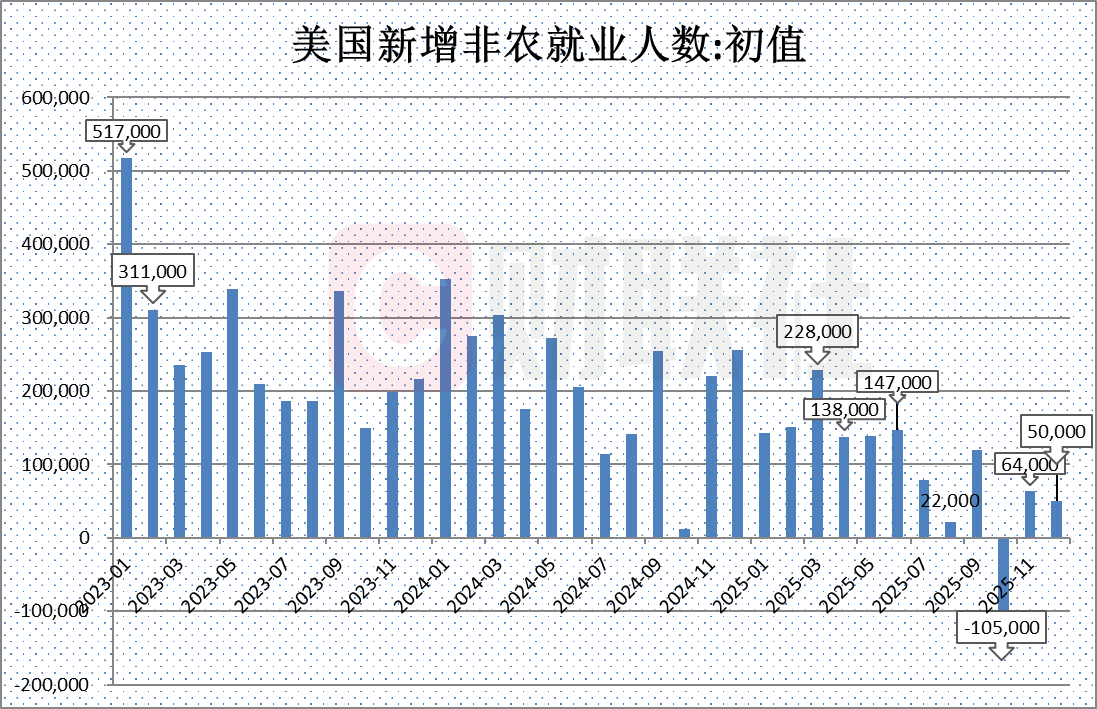 美国12月非农就业人数增加5万人,预估增加7万人,前值增加6.4万人。