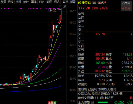 超捷股份是商业航天大牛股,近期股价频频创出历史新高,一度超过184元,相比2022年低点大涨十几倍。