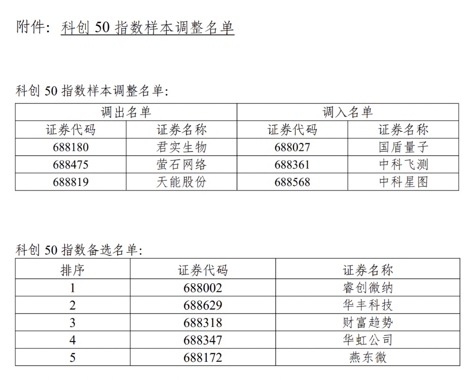 2月27日,上海证券交易所与中证指数有限公司联合发布公告称,决定调整科创50等指数样本,于2026年3月13日收市后生效。