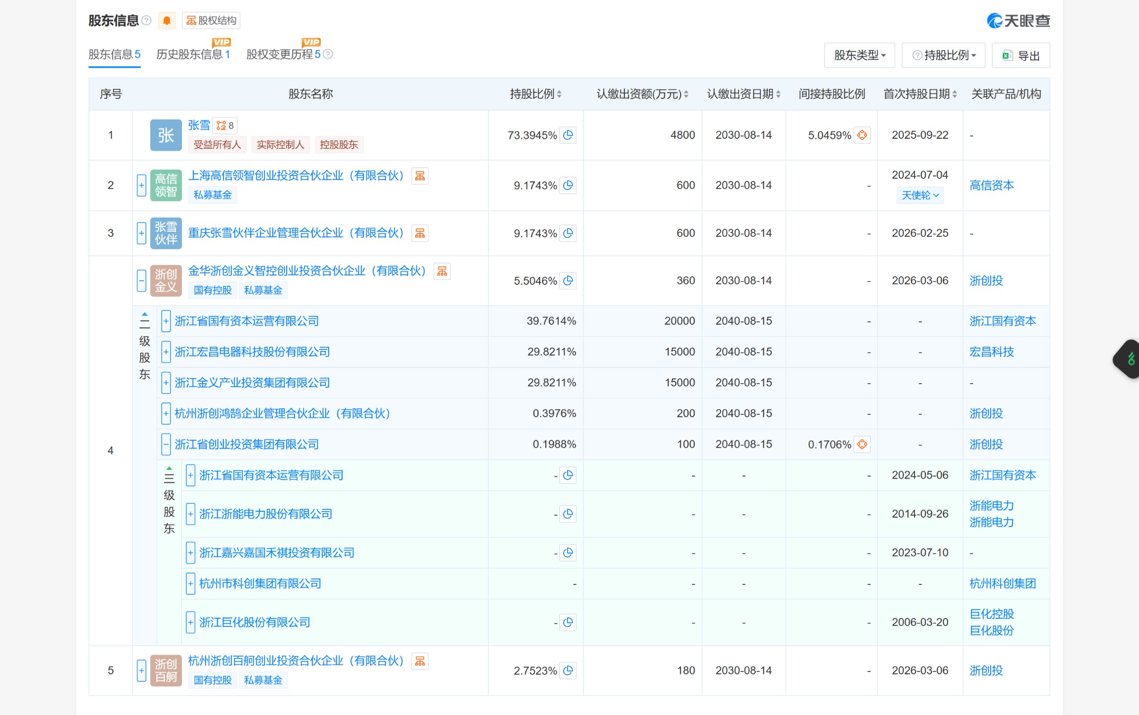 2026年3月初,张雪机车完成A轮融资,投后估值约10.9亿元,本轮投资方金华浙创金义智控创业投资合伙企业(有限合伙)背后,宏昌科技(301008)出资29.82%。
