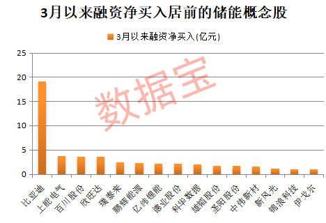 资金层面,据数据宝统计,截至3月31日收盘,3月以来融资净买入超1亿元的储能概念股有15只,如比亚迪、上能电气、百川股份、欣旺达、璞泰来等。