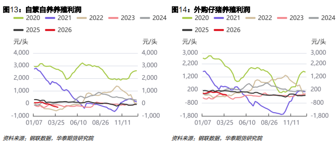 华泰期货指出,生猪养殖行业盈利持续恶化,行业陷入深度现金流亏损区间。截至2026年3月19日数据显示,当前自繁自养模式头均亏损280.18元,外购仔猪育肥模式头均亏损189.07元,生猪价格节后延续单边下行走势,已跌破养殖端现金流成本线,行业盈利全面承压。