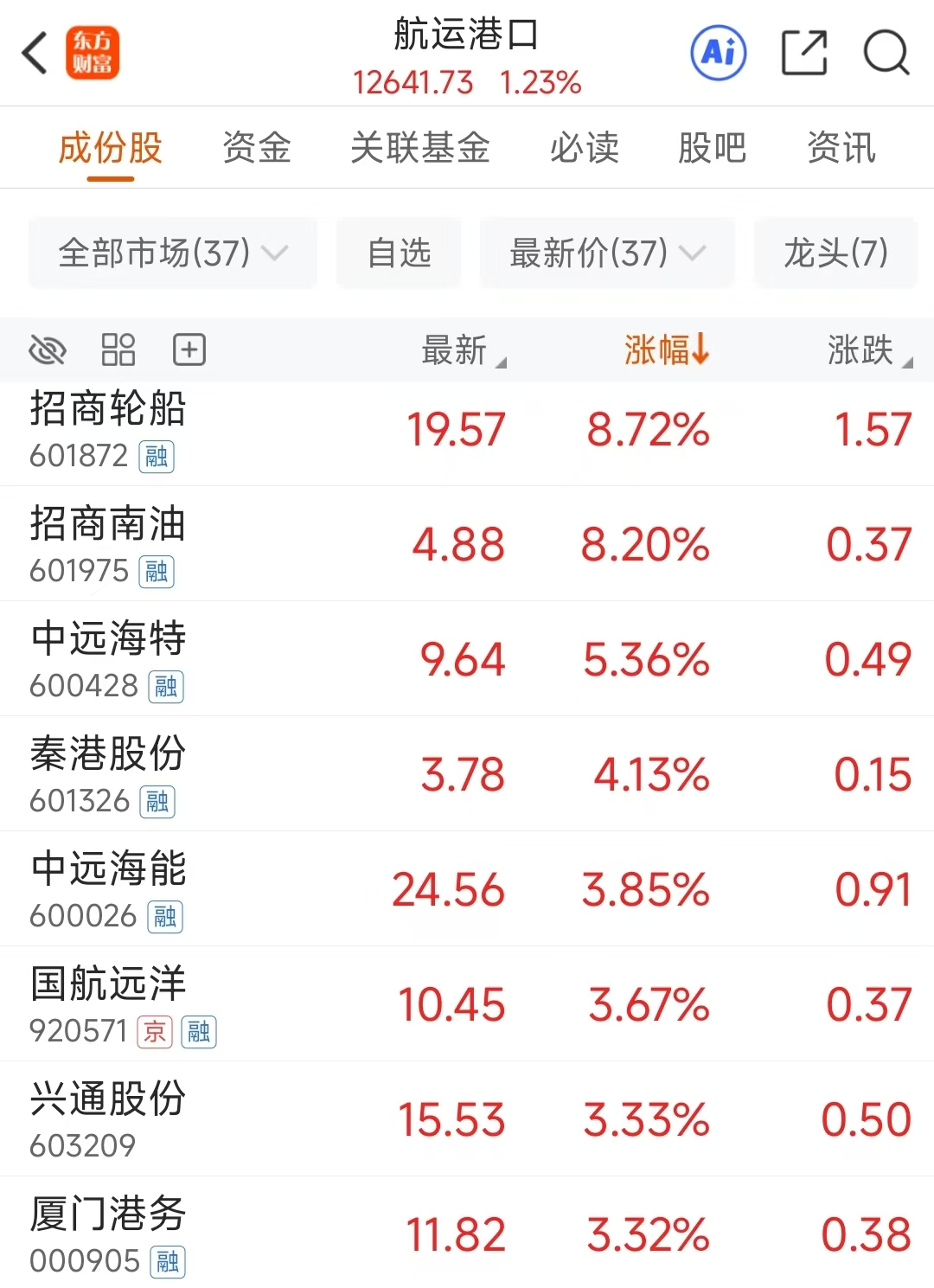 特朗普最新的讲话还带动了航运港口板块的走强,尤其涉及原油运输业相关个股,涨幅更甚。其中招商轮船、招商南油大涨超8%,中远海能涨超3%。