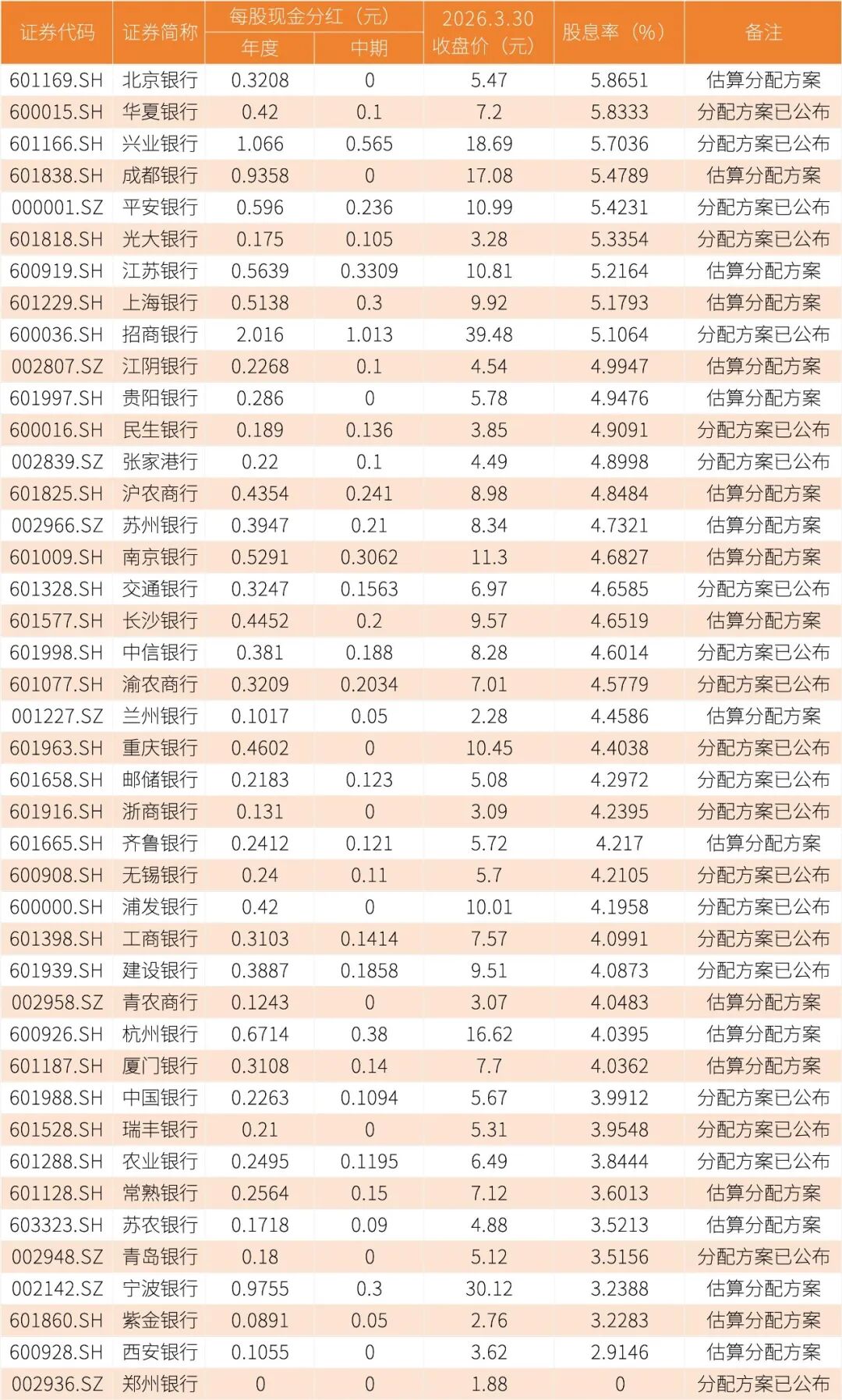国有大行中,交通银行分配方案已经公布,对比3月30日收盘价,股息率为4.66%。较高的股息率能提供稳定的现金回报,尤其在低利率环境下显得尤为珍贵。
