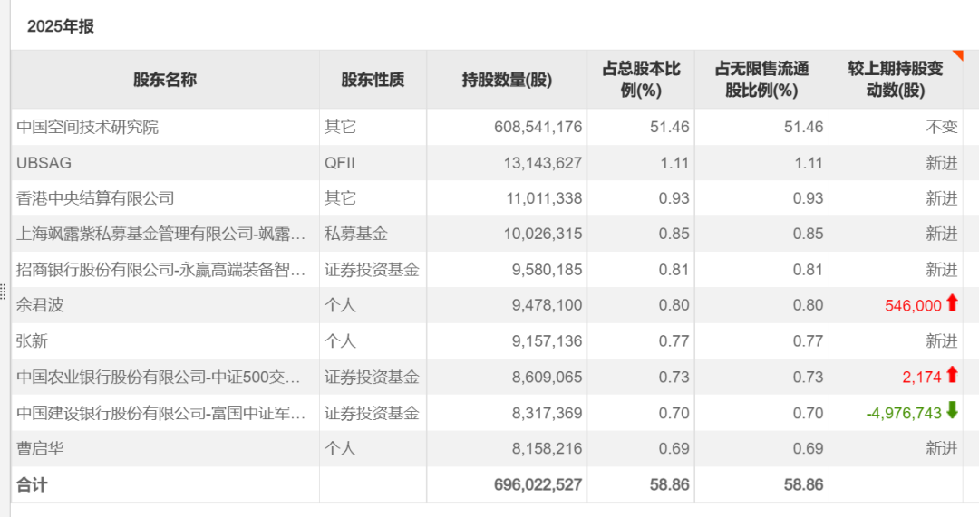 除了上述三位“牛散”以外,机构投资者也频出手。截至2025年底,瑞银集团新进为中国卫星第二大流通股东,持股数量为1314.36万股。此外,飒露紫550毛毛私募基金、永赢高端装备智选混合基金均新进为中国卫星前十大流通股股东,持股数量分别为1002.63万股、958.02万股。