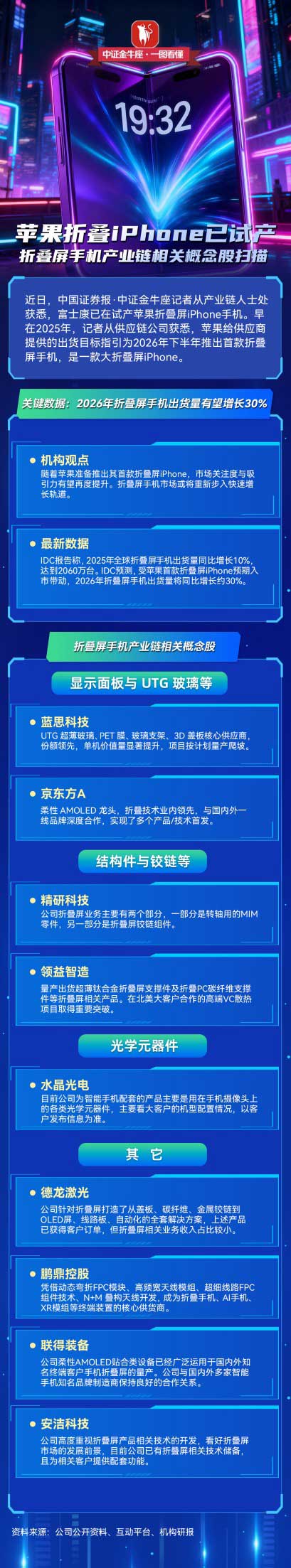 【一图看懂】苹果折叠iPhone已试产,折叠屏手机产业链相关概念股扫描